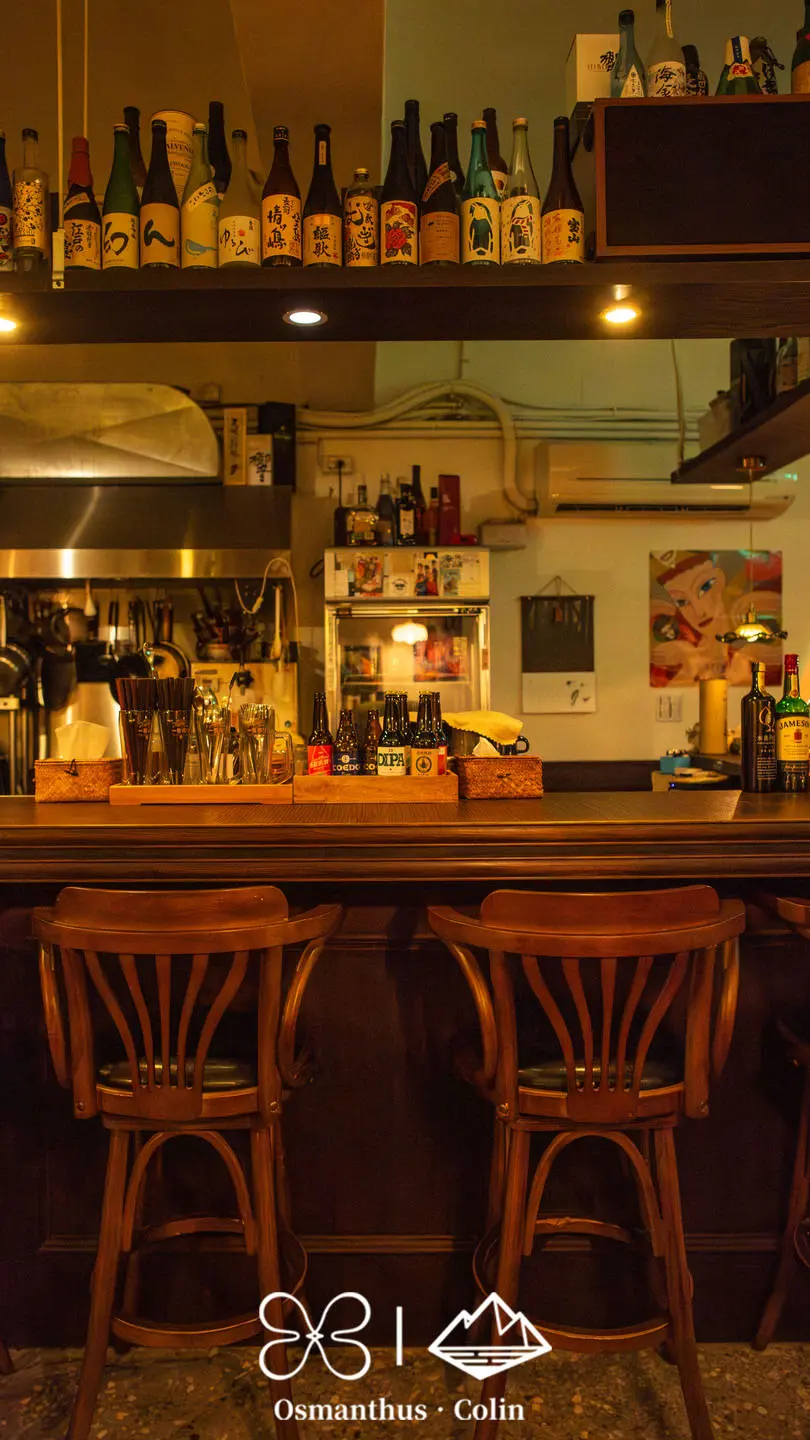 燈光設計讓整體空間更有層次感:夕陽燈帶出入口的氣氛,酒瓶後方用間接照明投射出折射光影,餐桌上吊燈集中照明,連廁所都用了七彩燈球,讓空間多了一點幽默與驚喜。